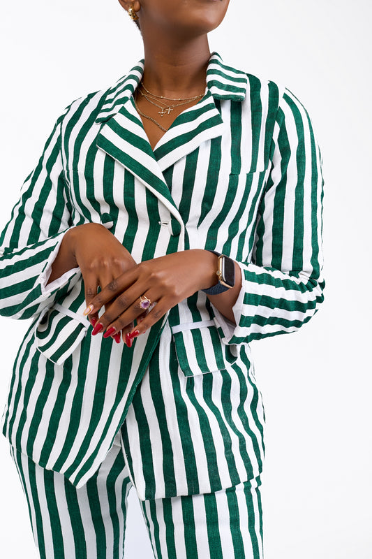 “Emerald Empire” Pant Set- Pinstripe Denim