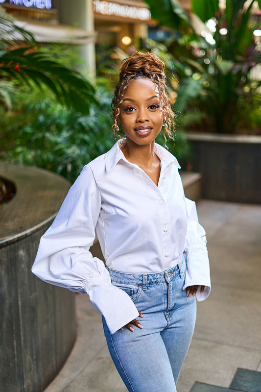 "Olivia Pope" Lantern Sleeve Cotton Shirt