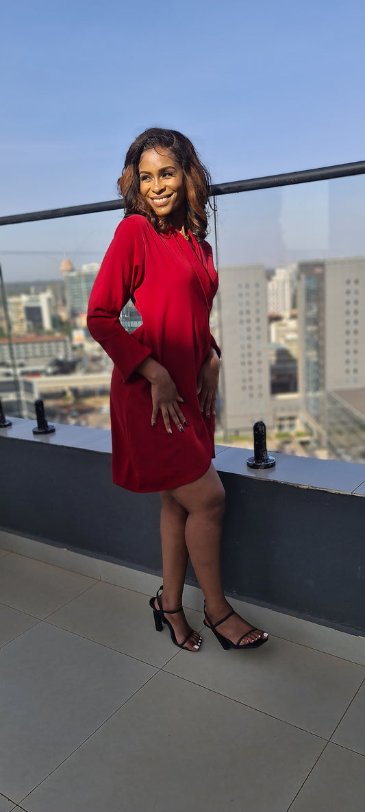 "Mamma Mia" Shawl Collar Wrap Dress- Wine red