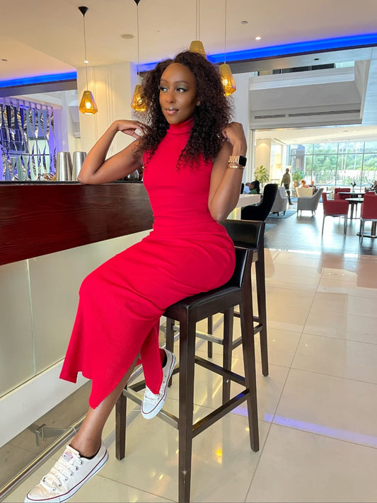 "Pure Vibes" Turtle neck Bodycon dress -Red