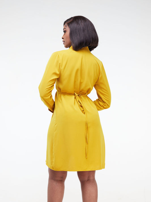 "Mamma Mia" Shawl Collar Wrap Dress- Mustard