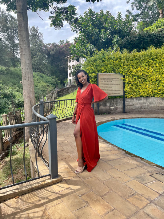 “Ma Lady” Wrap Maxi Dress- Burnt Orange