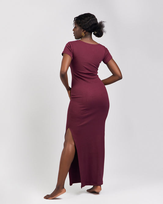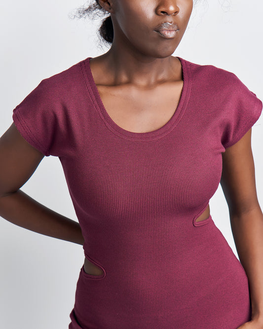"Cutting Edge" Ribbed Bodycon Dress Burgundy - Egg Plant