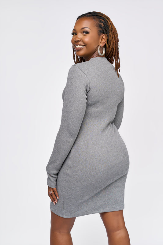 “Bailey" Ribbed Mini Bodycon Dress- Grey