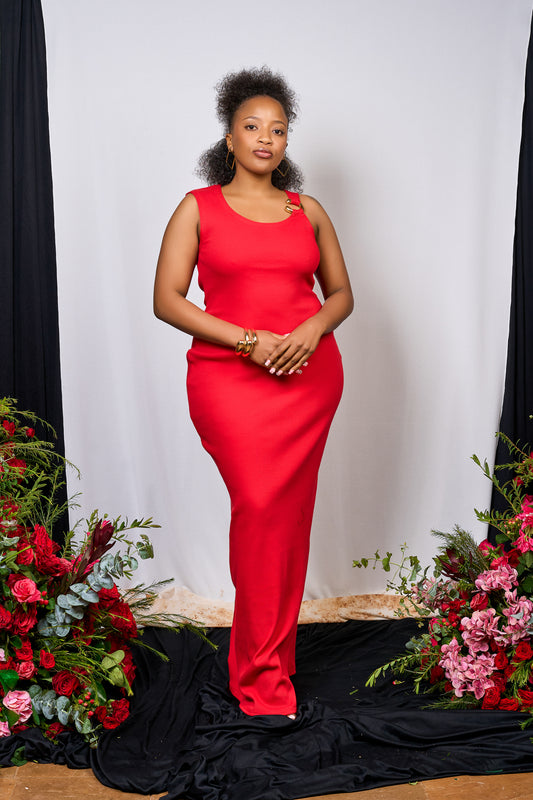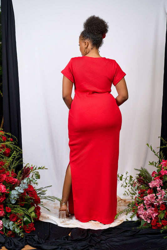 “Merry Fine" Ribbed Maxi Bodycon Dress- Red