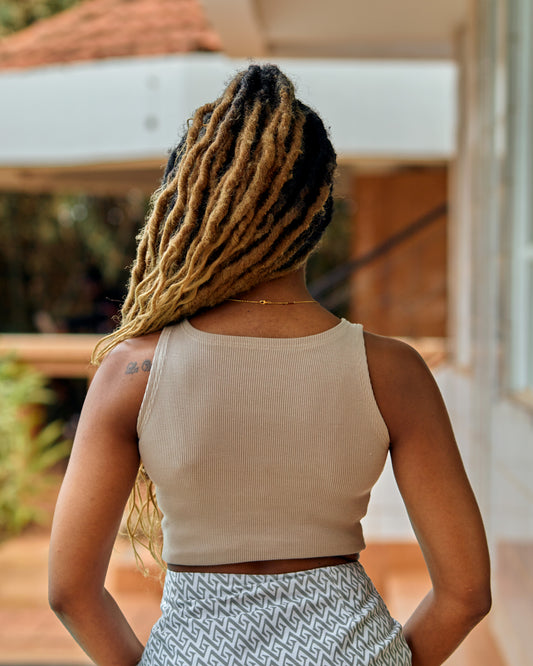 "Elevated Essential" Padded Shoulder Ribbed Tee Dress- Stone