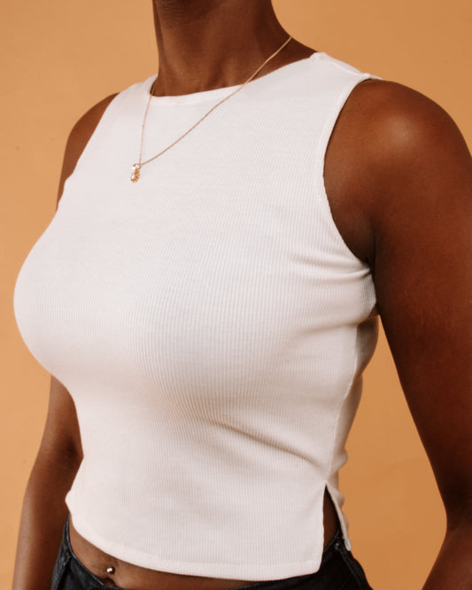 “Basic” Off White Long Sleeve Ribbed Crop Top