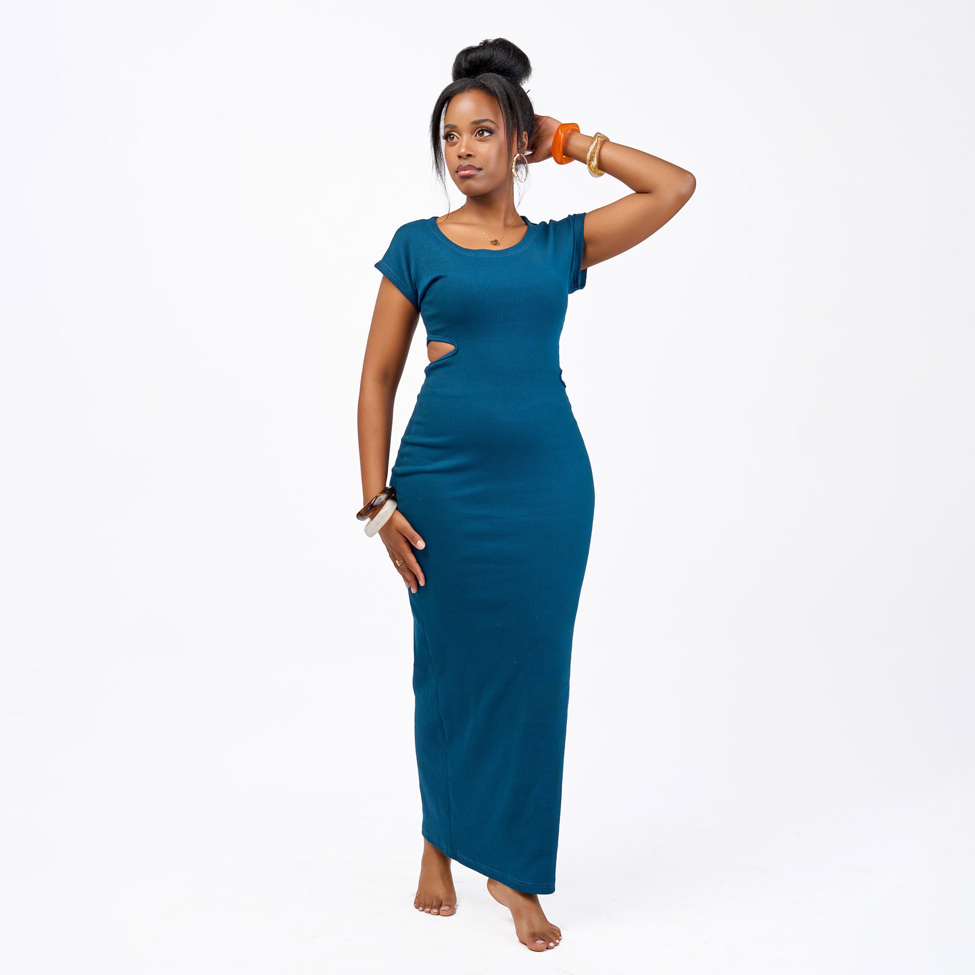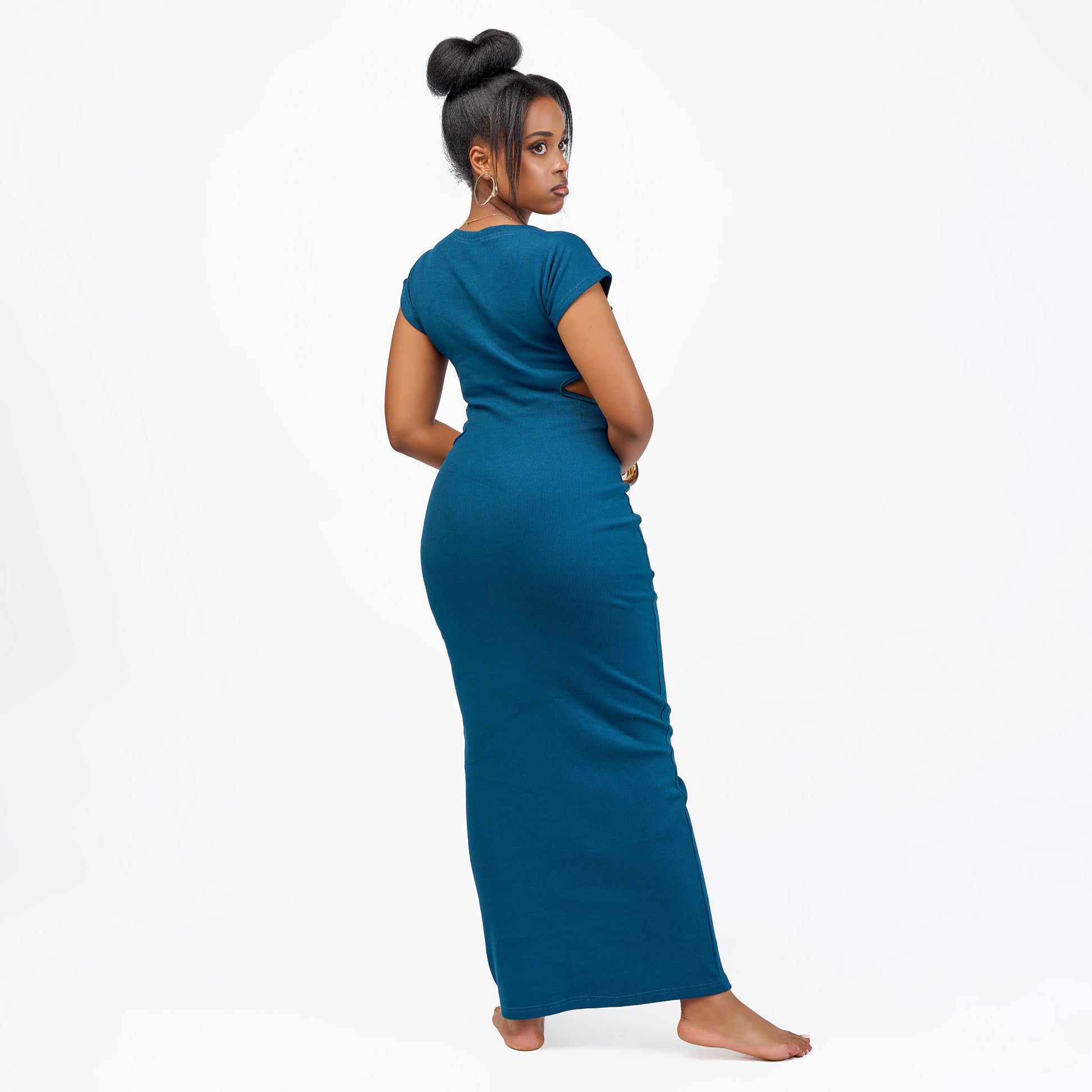 “Cutting Edge" Ribbed Bodycon Maxi- Teal