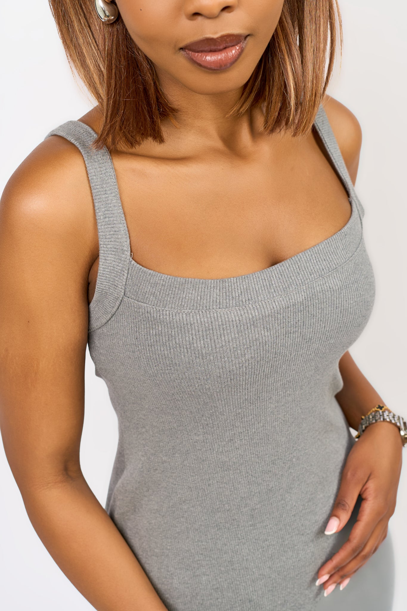 “Just a girl” Ribbed Bodycon Maxi Dress- Grey